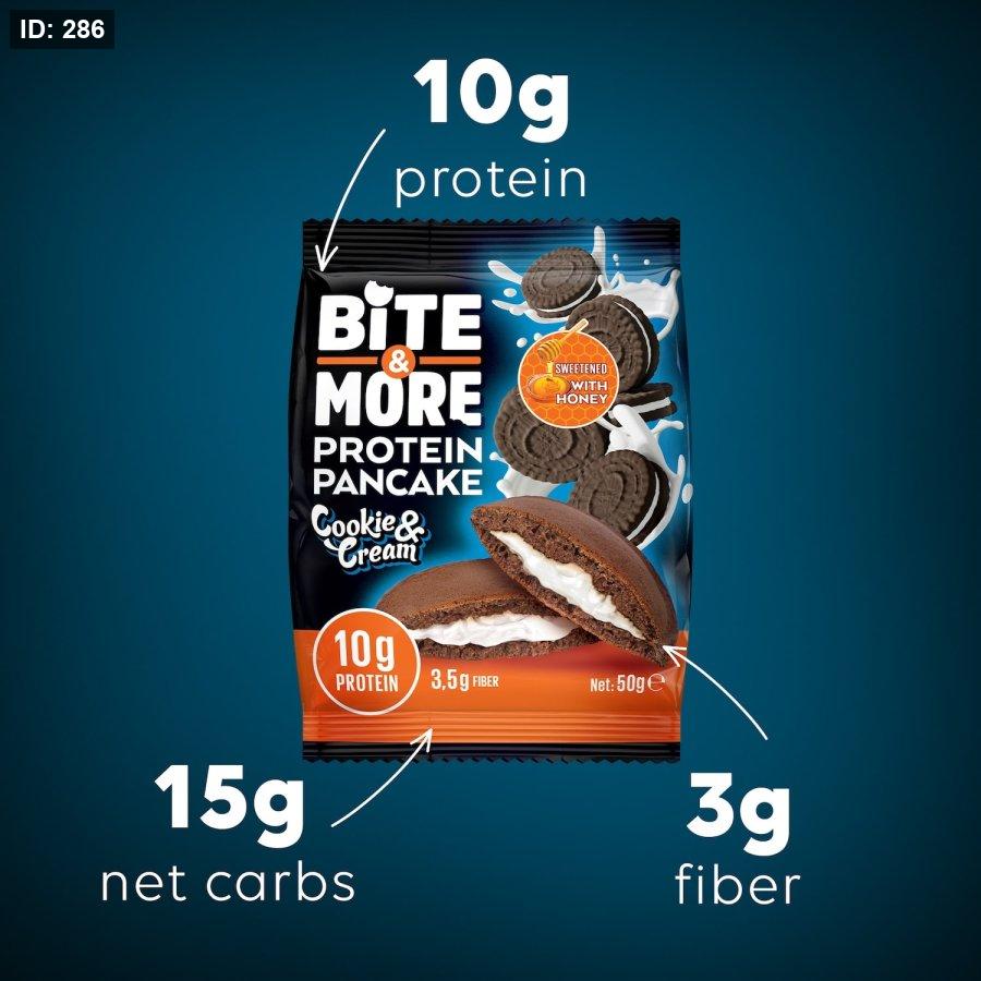 ابدأ يومك بنشاط مع بان كيك بروتين كوكيز آند مور بنكهة الكريمة - بان كيك غني بالبروتين والألياف، مصنوع من عجينة الشوكولاتة ومحشو بحشوة كوكيز آند كريم . تحتوي كل حصة (50 غرام) على 10 غرامات من البروتين ، و 4 غرامات من الألياف ، و 156 سعرة حرارية فقط ، مع 4 غرامات فقط من السكر مدعومة بـ 5 غرامات من كحوليات السكر لمذاق متوازن. مثالية كوجبة خفيفة غنية بالبروتين أثناء التنقل ، أو كوجبة إفطار مميزة ، أو كوجبة خفيفة قبل أو بعد التمرين . يقدم هذا البان كيك ذو المكونات الطبيعية تغذية متوازنة دون التضحية بالمذاق. اختر بايت آند مور لوجبة خفيفة صحية قليلة السكر ، مُشبعة، ولذيذة للغاية - بنكهة كوكيز آند كريم، وتغذية ذكية .