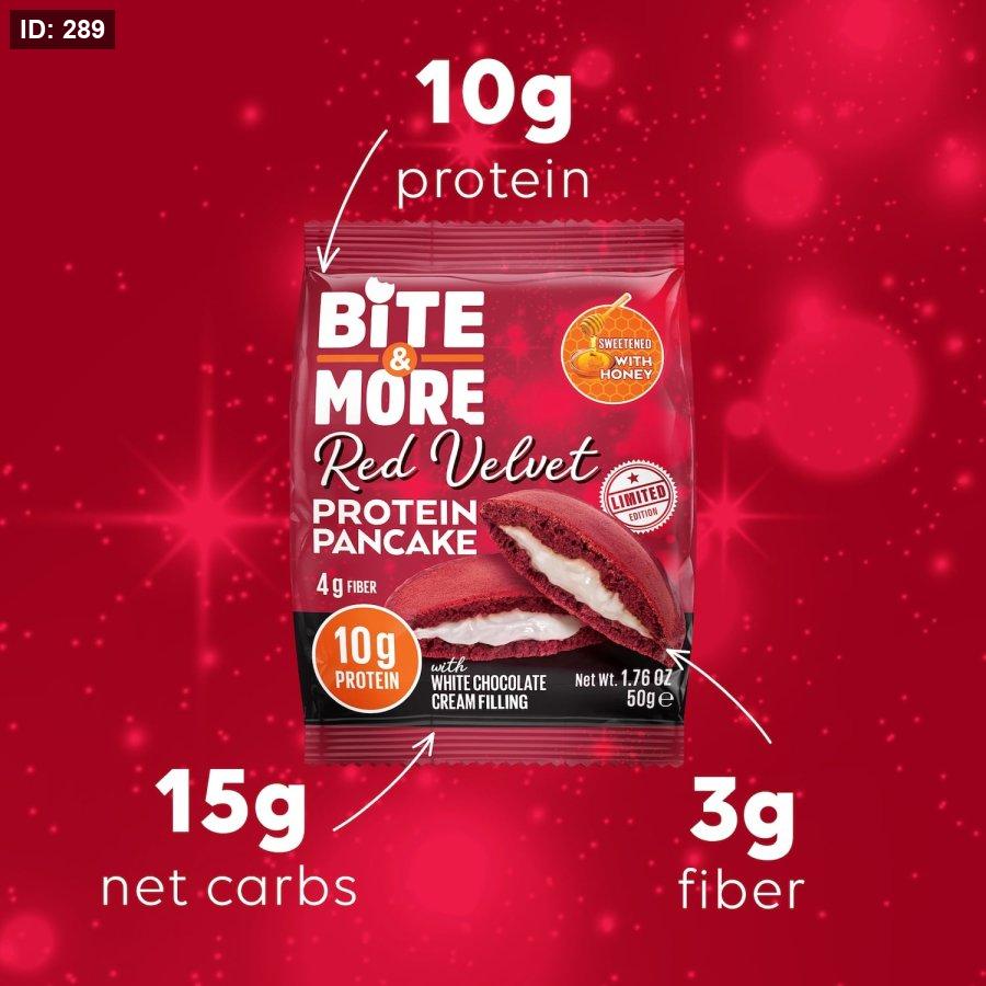 ابدأ يومك بنشاط مع بان كيك بروتين ريد فيلفيت من بايت آند مور - بان كيك غني بالبروتين والألياف، مصنوع من عجينة كيك ريد فيلفيت (ملون طبيعيًا بالشمندر) ومحشو بكريمة ريد فيلفيت ناعمة . تحتوي كل حصة 50 غرام على 10 غرام من البروتين ، و4 غرام من الألياف ، و 156 سعرة حرارية فقط ، مع 4 غرام فقط من السكر مدعومة بـ 5 غرام من كحوليات السكر لحلاوة متوازنة. مثالية كوجبة خفيفة غنية بالبروتين أثناء التنقل ، أو كوجبة إفطار مميزة ، أو كوجبة خفيفة قبل أو بعد التمرين ، توفر هذه البان كيك ذات المكونات الطبيعية تغذية متوازنة دون التضحية بالمذاق. اختر بايت آند مور لوجبة خفيفة صحية قليلة السكر ، مُشبعة، ولذيذة للغاية - بنكهة ريد فيلفيت، وتغذية ذكية .