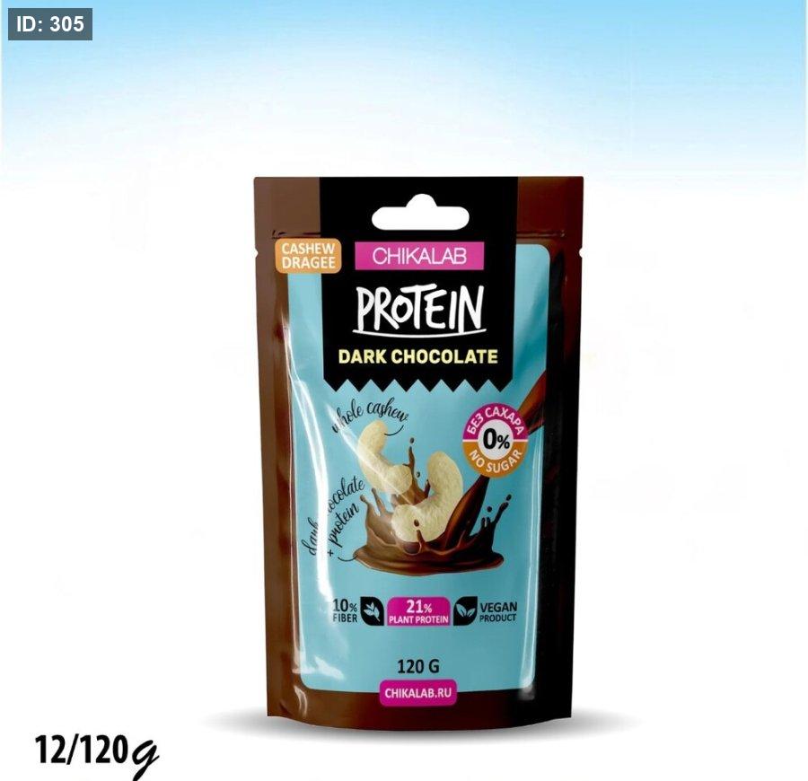 دراجيه كاجو بالشوكلاتة الداكنة النباتية 10% ألياف 21% بروتين بدون سكر 120 غم