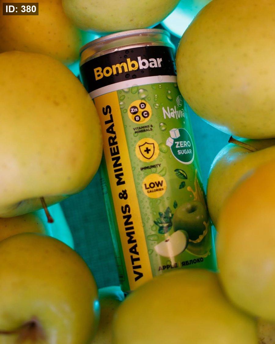 مشروب غازي (Bombbar) مدعم بالفيتامينات والمعادن 330مل بنكهة التفاح
