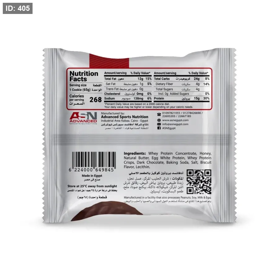 كوكيز بروتين بحبيبات الشوكولاتة 15غم بروتين