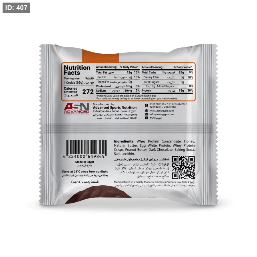 كوكيز بروتين بنكهة الفول السوداني 15غم بروتين بدون سكر