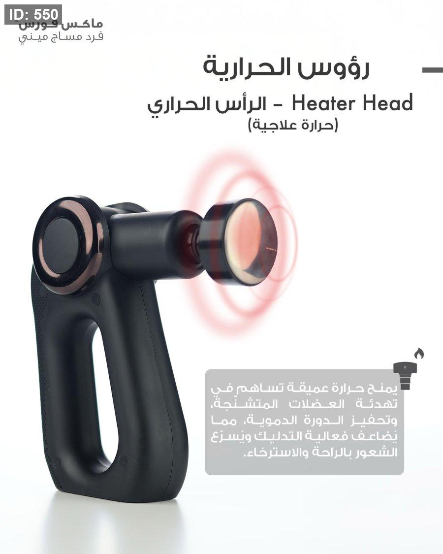 الرأس الحراري: يمنح حرارة عميقة تساهمٍ في تهدئة العضلات المتشنّجة. وتحفيز الدورة الدموية، مما يُضاعف فعالية التدليك ويُسرّع الشعور بالراحة والاسترخاء.
