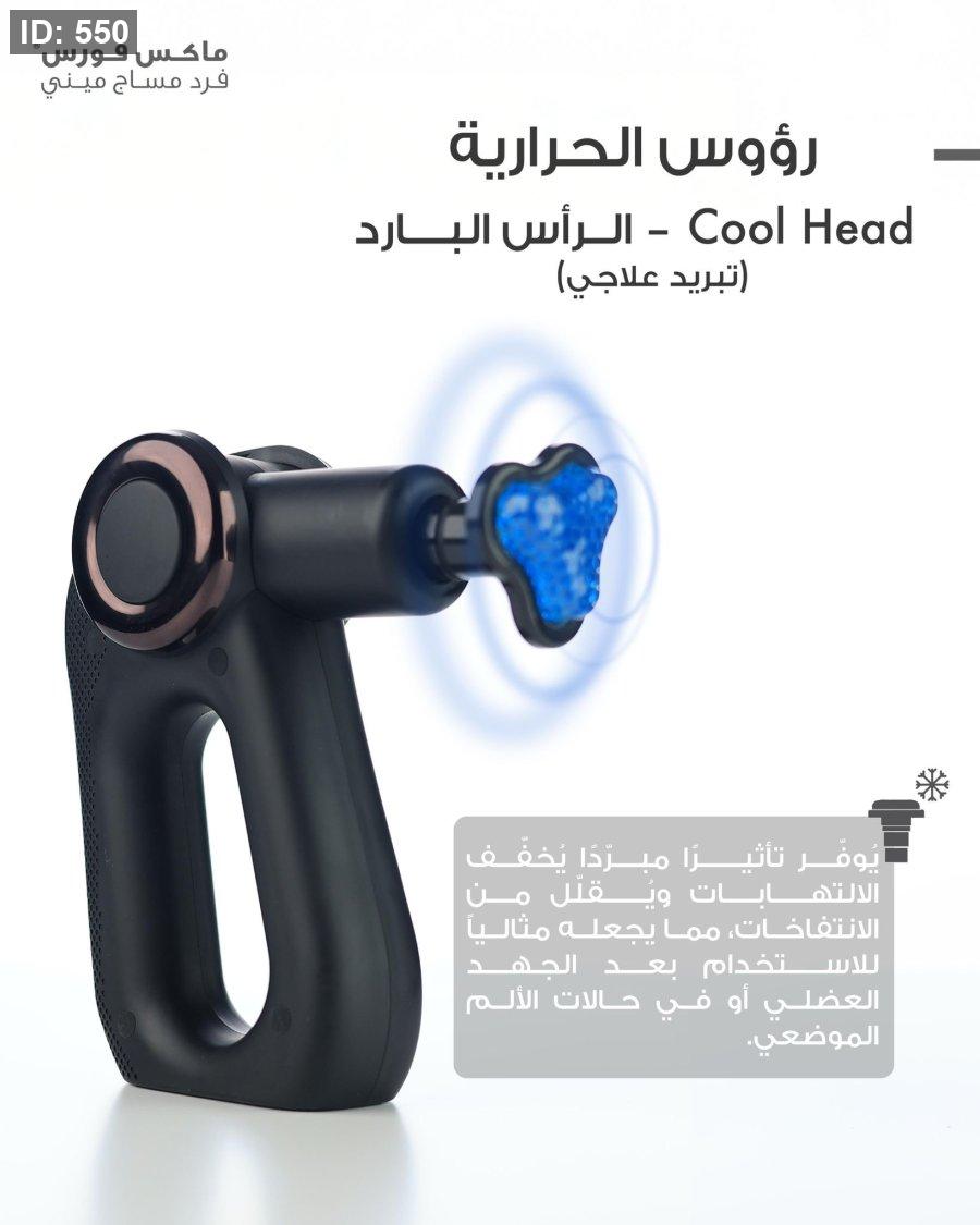 الرأس البارد: يُوفِّر تأثيرًا مبرّدًا يُخفَف الالتهابات ويُقلل من الانتفاخات، مما يجعله مثالياً للاستخدام بعد الجه العضلي أو في حالات الألم الموضعي