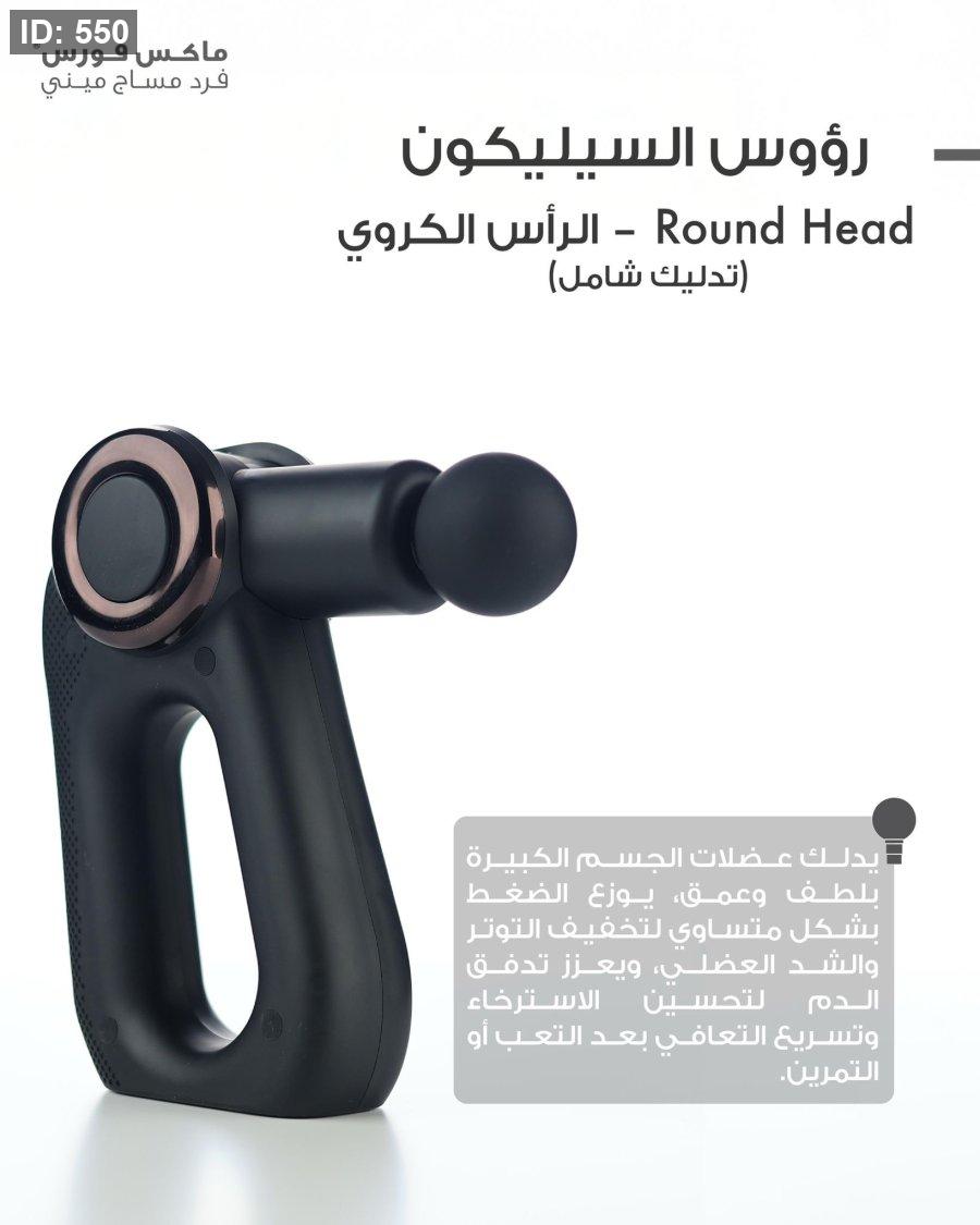 الرأس الكروي : يدلك عضلات الجسم الكبيرة بلطف وعمق، يوزع الضغط بشكل متساوي لتخفيف التوتر والشد العضلي، ويعزز تدفق الدم لتحسين الاسترخاء وتسريع التعافي بعد التعب أو التمرين.