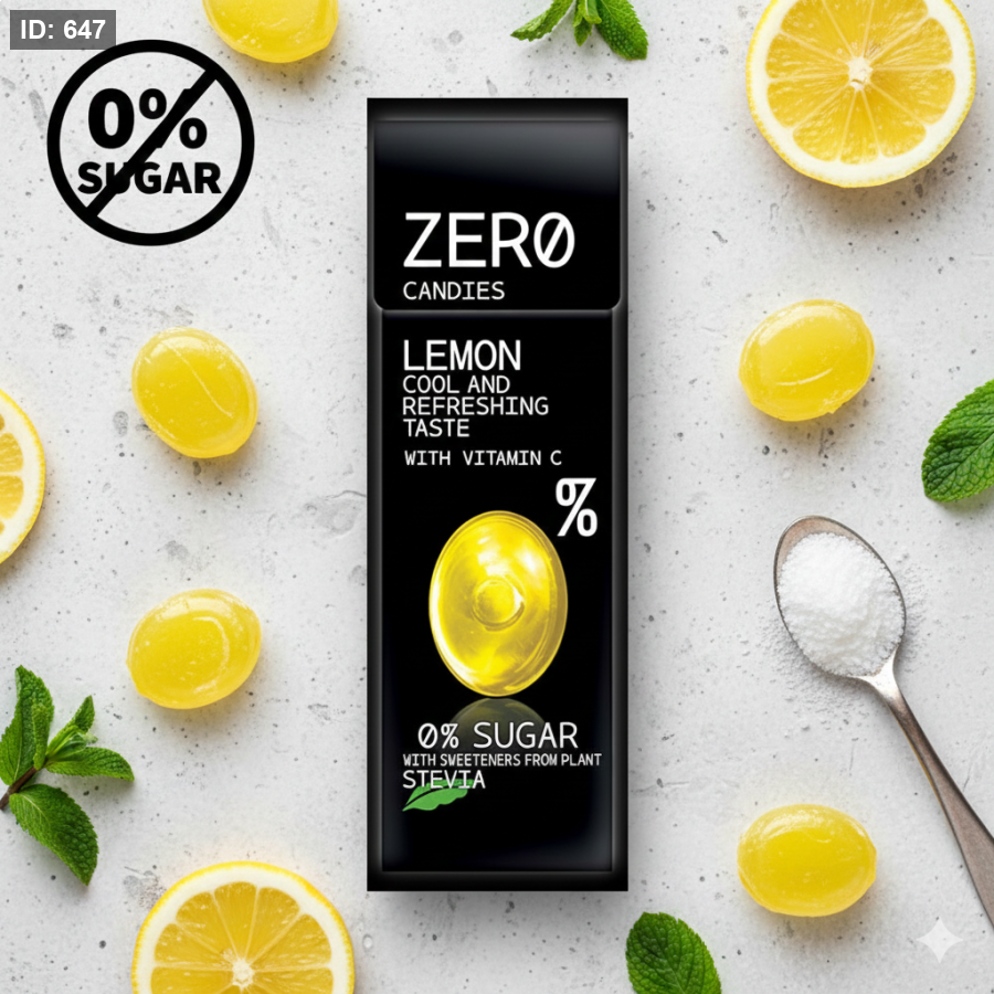 سكاكر ZERO بدون سكر مضاف بنكهة الليمون مع فيتامين سي