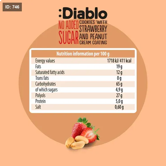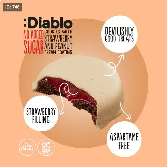 بسكوت الكاكاو المحشي بكريمة الفراولة المغطى بالفول السوداني بدون إضافة السكر