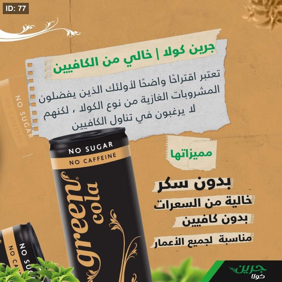 جرين كولا بنكهة الكولا بدون كافيين وبدون سكر