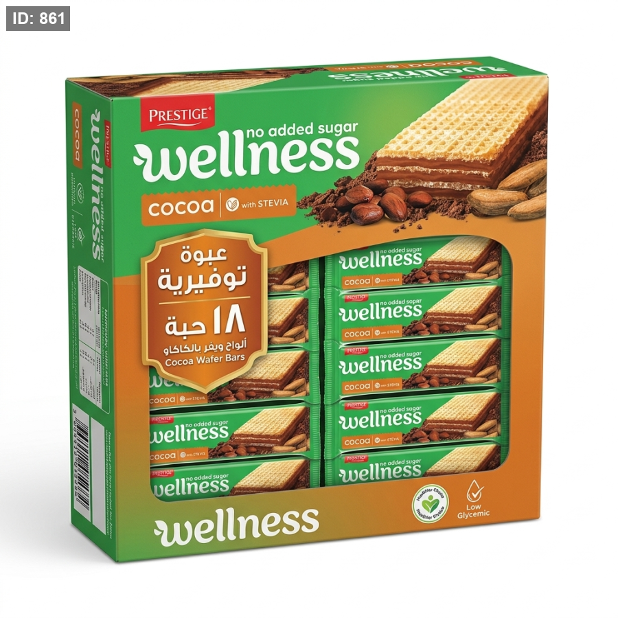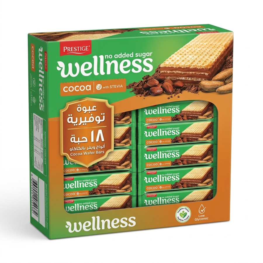 بسكوت ويفر مقرمش بحشوة الكاكاو 18 حبة wellness بدون سكر